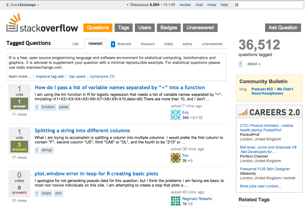 http://stackoverflow.com/questions/tagged/r